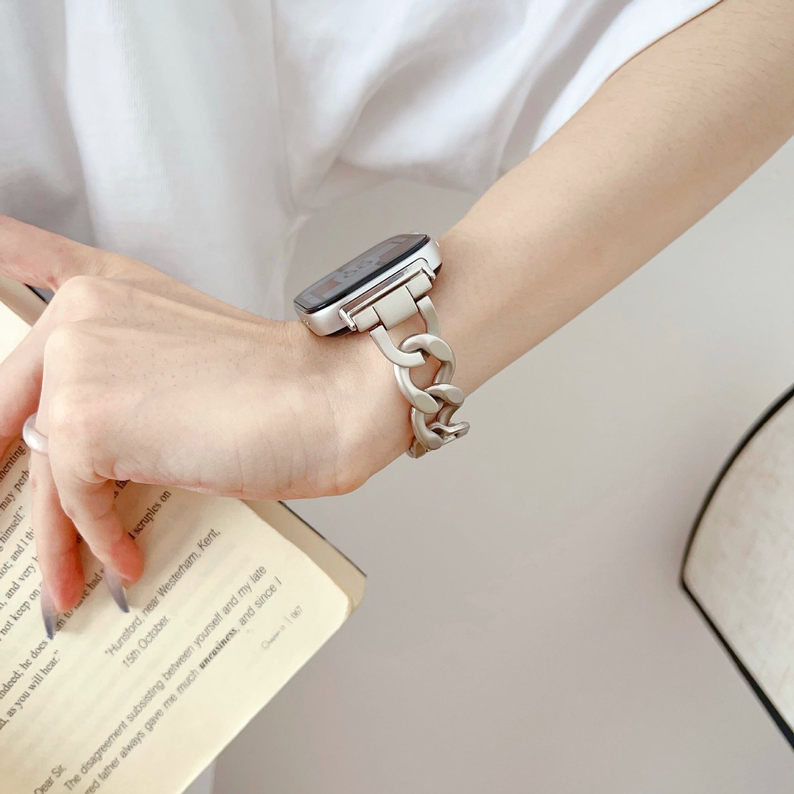 Indulge in premium stainless steel and twisted elegant link chains with our luxurious watch band. Each band comes with a metal adapter to seamlessly fit your Apple Watch.